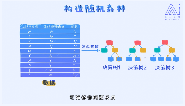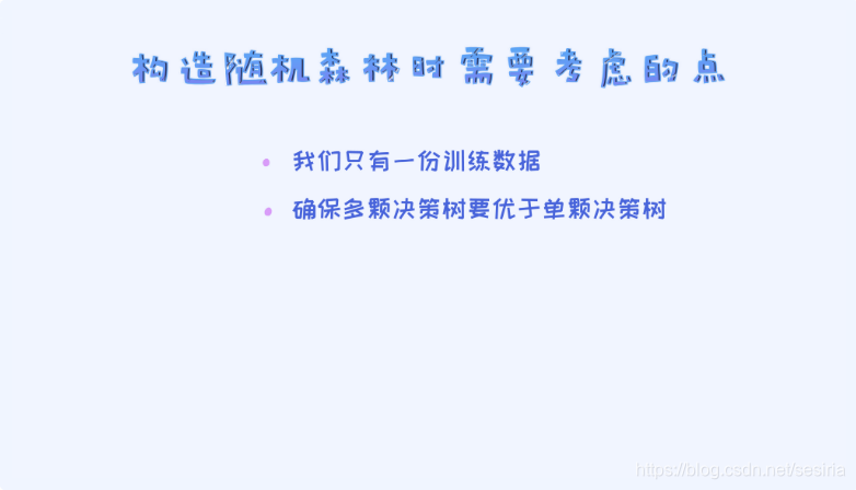 we could also randomize the features. For example, if we have 100 features, we choose 10 from 100 randomly, then we build the decision tree via the 10 features.