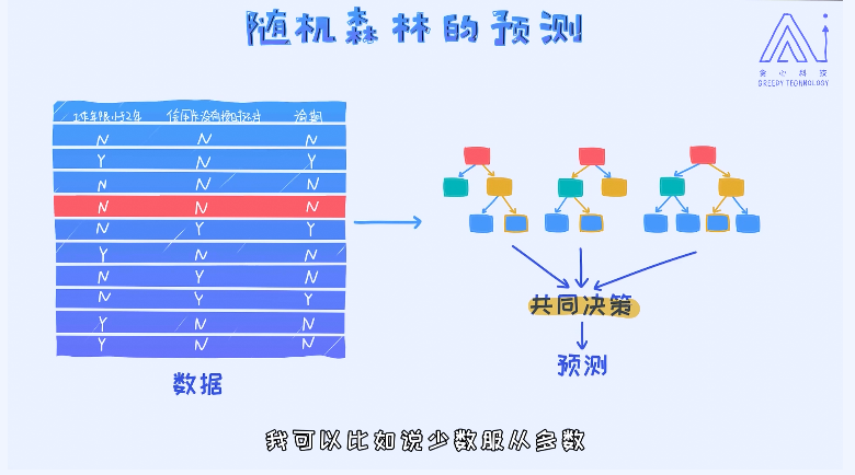 The random forest using multiple decision trees for the final predictions